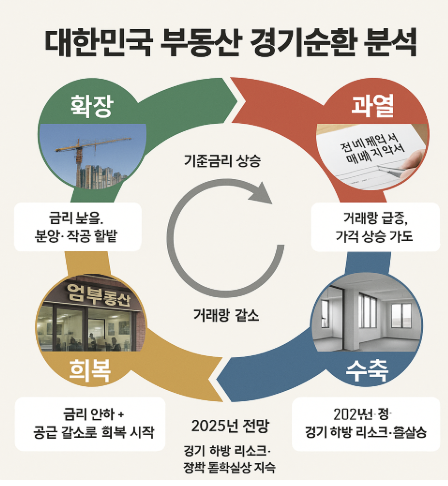 대한민국 부동산 시장은 단기적인 가격 흐름만으로 이해하기 어렵습니다. 정부의 규제 정책, 금리 수준, 경기 사이클, 인구 구조 등 수많은 요인이 복합적으로 작용하기 때문에, 보다 거시적인 관점에서 경기순환을 분석해야 정확한 투자전략을 수립할 수 있습니다. 특히 한국은 대출 규제나 세제 정책이 자주 바뀌며, 이에 따라 시장이 빠르게 과열되거나 위축되는 특성이 있습니다. 이런 특징을 고려하면 부동산 시장의 상승·하락·보합 국면을 포함한 경기순환 구조를 체계적으로 이해하고 각 시기에 맞는 리스크 관리 전략을 세우는 것이 필수입니다. 단순히 ‘지금 오르니까 사야 한다’, ‘내리니까 기다리자’와 같은 단편적 판단보다는, 왜 시장이 이렇게 움직이는지 근본적인 구조를 분석하고 접근해야 안정적 자산 운용이 가능합니다.
